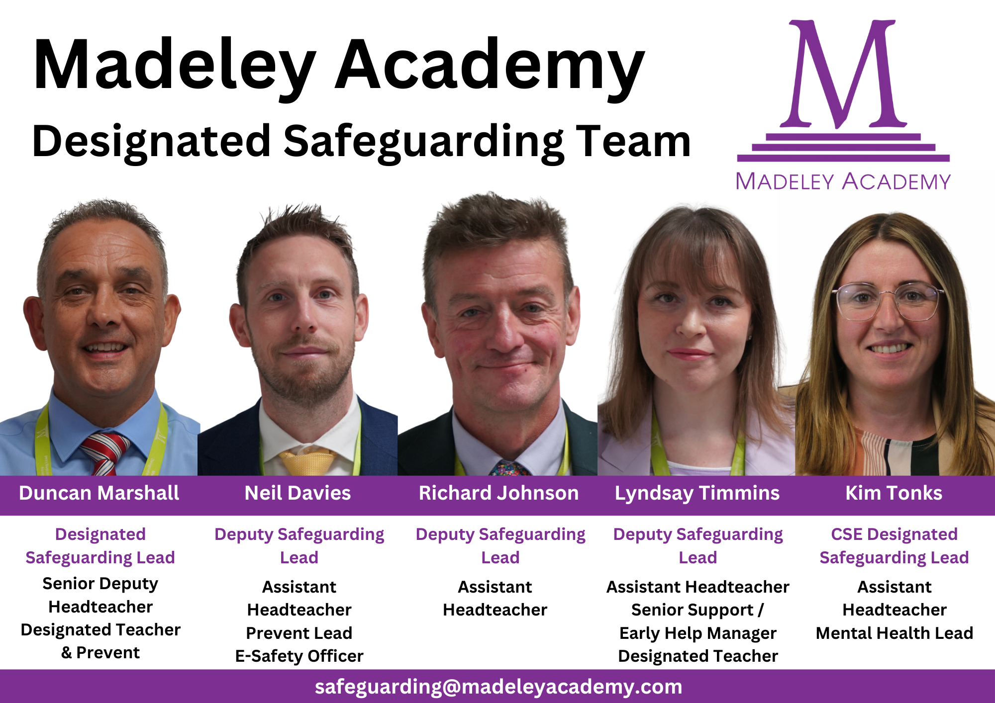 If you have safeguarding concerns about your child or any other child at the academy, then please contact the safeguarding team via the Academy reception or by emailing safeguarding@madeleyacademy.com